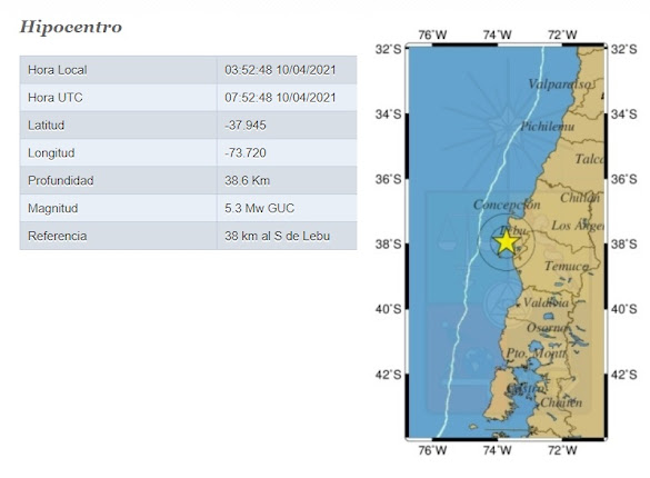5. 3 grados,38.6km de profundidad, 38km al Sur de Lebu