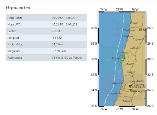 Sismo entre regiones de Coquimbo, Metropolitana y de O'Higgins ,